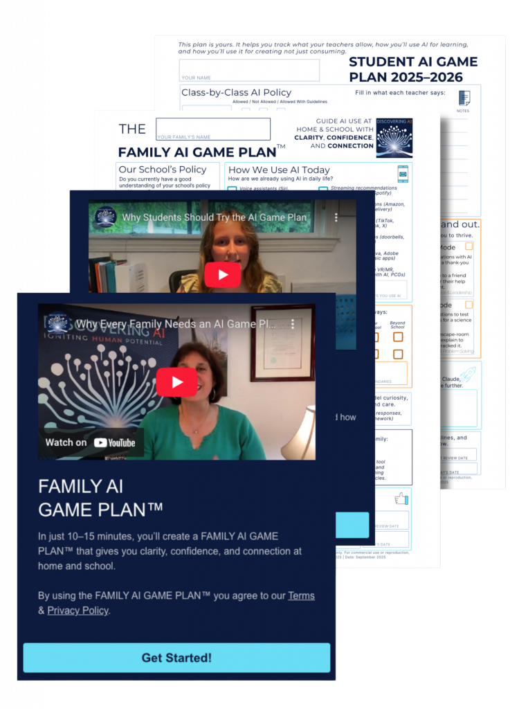 In the immediate, this means: Every family with a school-age child has a FAMILY AI GAME PLAN™ guiding their child’s AI use at home and at school.